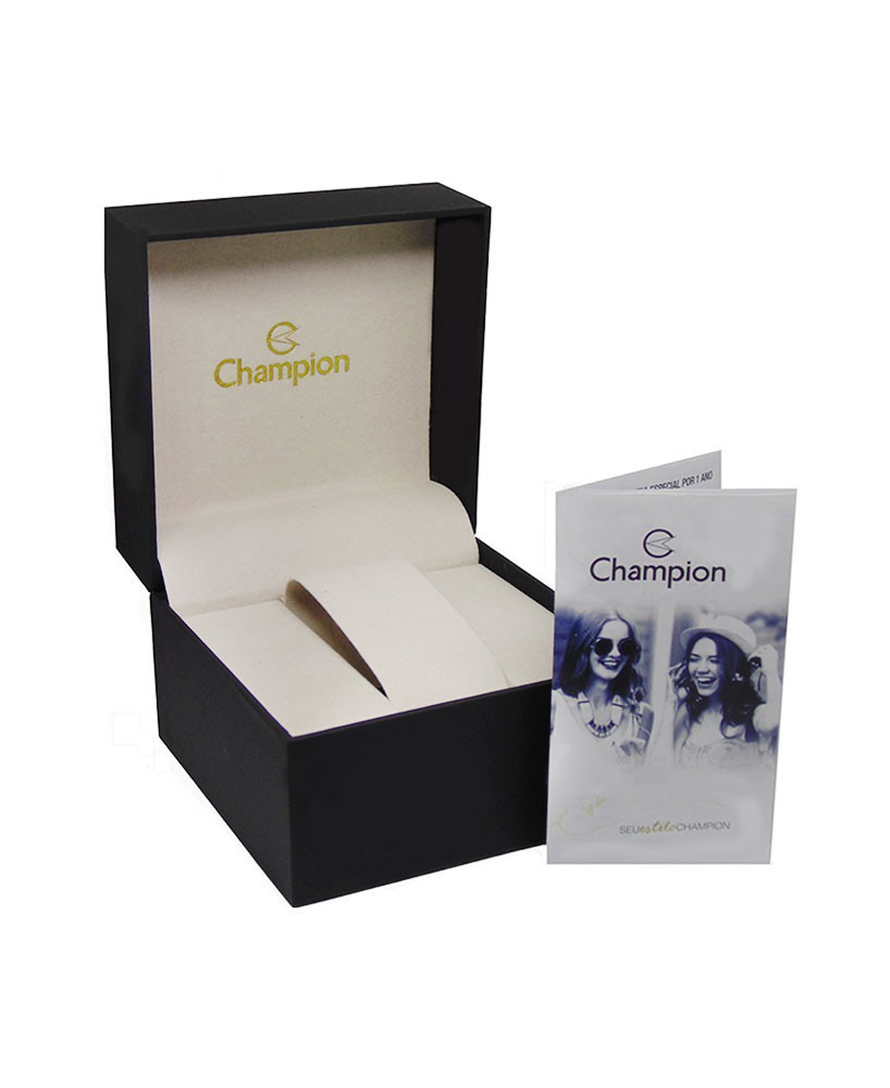 Este produto acompanha:Kit champion feminino com relógio, gargantilha e par de brincos folheados.